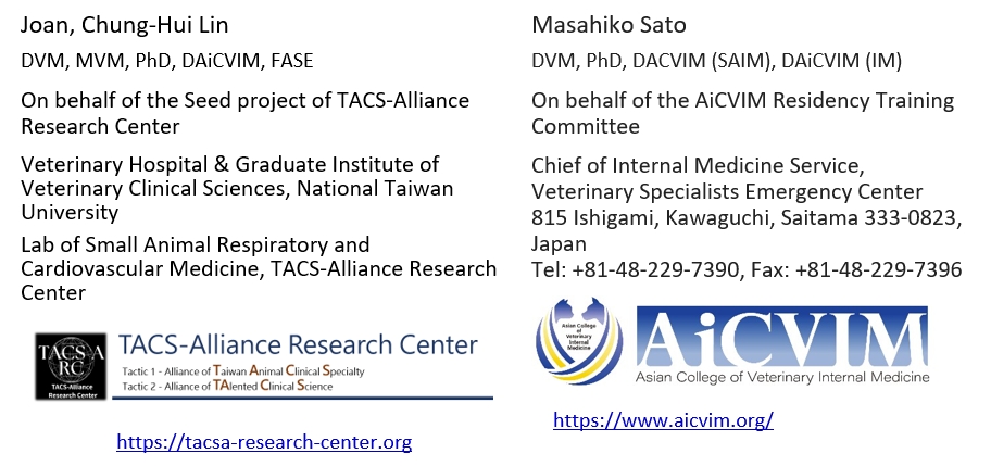 * 本課程由TACS-Alliance Research Center與AiCVIM Residency Training Committee為支持AiCVIM 亞洲獸醫內科專科住院醫師訓練計畫的受訓住院醫師而規畫,由DACVIM (Cardiology)美國心臟專科醫師講師進行專科考試層級之心臟醫學重點回顧與討論。